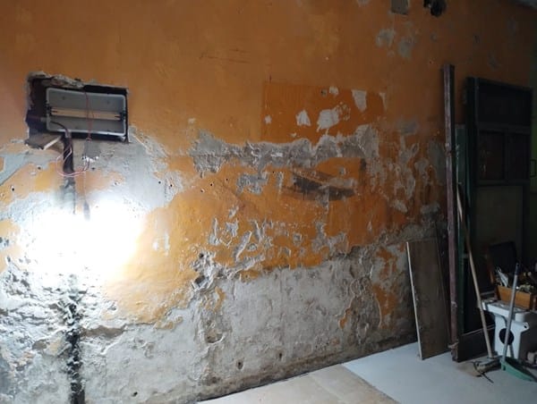 Tengo esta pared medianera asquerosa en mi garaje (en la foto adjunta). Evidentemente tiene humedad de cimientos. ¿Cómo harían para reparar esta pared o que opciones recomiendan?. ¿Es necesario si o si picas hasta el ladrillo y mandar mortero con hidrófugo o hay alguna forma menos trabajosa para reparar esta pared y que quede bien?