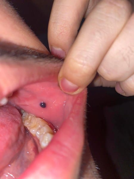 *Lo más seguro es que sea un pequeño hematoma o sea un pequeño acumulo de sangre bajo la mucosa por algún traumatismo*