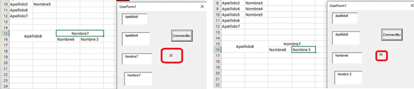 ' // Llenar los cuadro de texto con los datos del registro elegido Private Sub UserForm_Initialize() Dim s As Long For i = 1 To 23 If Cell.MergeCells Then MsgBox "esta agrupada" Else Me.Controls("TextBox" & i).Value = ActiveCell.Offset(0, i - 1).Value h = ActiveCell.Offset(0, i - 1).Value End If Next i s = ActiveCell.Row Label27.Caption = s End Sub ------------------------------------------------------------------------- ------------------------------------------------------------------------ ' // Llenar los cuadro de texto con los datos del registro elegido Private Sub UserForm_Initialize() Dim s As Long For i = 1 To 23 Me.Controls("TextBox" & i).Value = ActiveCell.Offset(0, i - 1).Value h = ActiveCell.Offset(0, i - 1).Value Next i s = ActiveCell.Row Label27.Caption = s End Sub