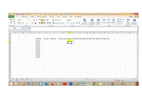 Realice algunos cambios de comienzo tanto en la columna como en la fila y no logro que funcione la macro que me permite posicionarme en la fecha por ej. H13 y en la I13 coloque "P".
