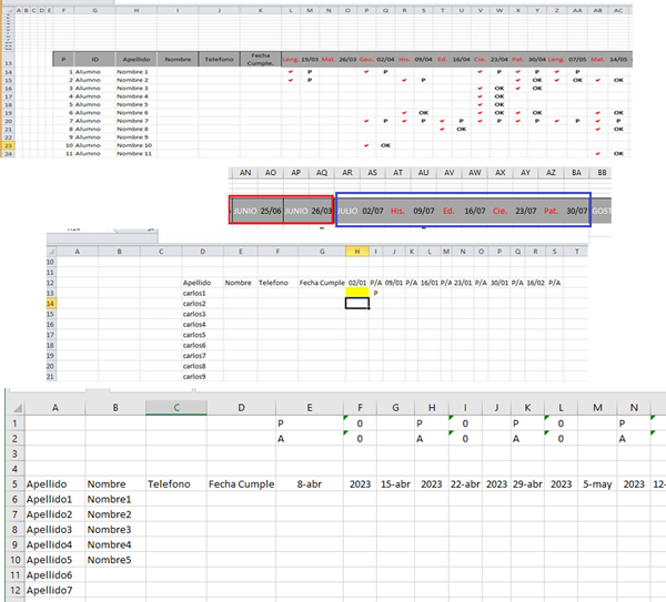 A su vez busco que mientras tenga datos en la cabecera la macro funcione, esto se debe que según las fechas podría ser de mas o menos columnas a tildar y colocar la "P".
