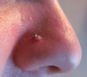 Otro motivo para que ocurra esta alteración es un queloide, (tejido de la cicatriz del piercing), suele tener este aspecto, aunque es variable en función de cada persona y zona en la que el piercing haya sido hecho. (Perdone, no he logrado encontrar un caso que afecte a la misma zona),