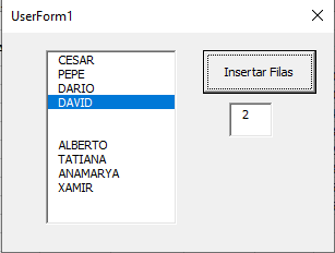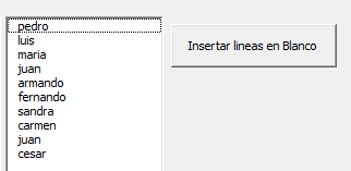 Insertar filas en blanco de bajo del registro que este seleccionado en un listbox de un formulario.