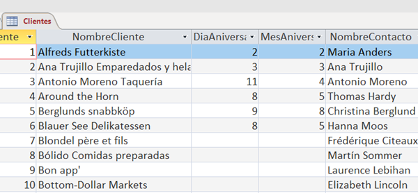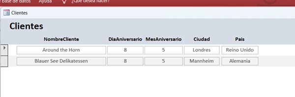 Tengo una BD CLIENTES con un campo fecha. Esta fecha se refiere al día de fundación de la entidad de mi cliente y yo quiero que mi BD me recuerde esta importante fecha a traves de un informe o aviso para enviarle una felicitación por cualquier canal de comunicación. Es decir que cada 24 de diciembre de cada año me anuncie cuáles clientes celebran ese día.