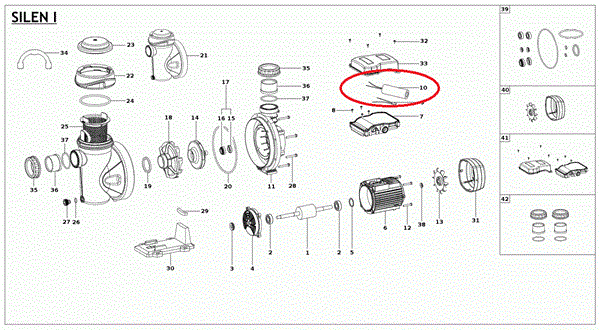Analizando los productos de ESPA SILENT de 1 CV, veo que todos llevan motor monofásico. Y llevan capacitor de arranque. Tal vez por eso no te esta arrancando solo. Buscalo cerca de la bornera del motor. Mira: Te lo redondee en rojo.