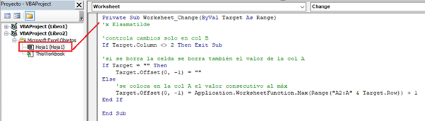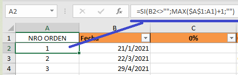 Que la Columna A sea igual a Autonumeración incremental en función de si se introduce dato en columna B.