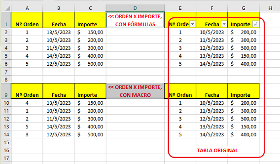 Al hacer esto, la numeración de la columna A ya no sería correlativa ya que los datos de fecha son aleatorios.