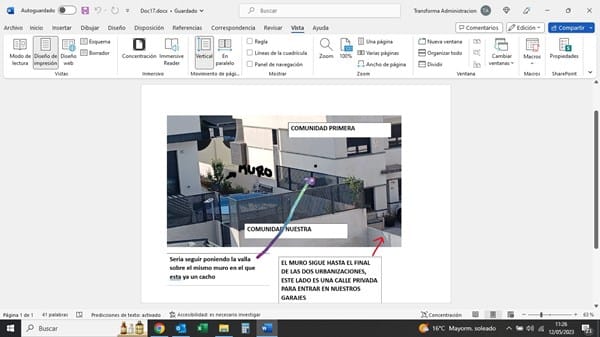 Por lo que nuestra vecina, dice de hacer otro muro pegado al ya existente. Dice que esto debería hacer cargo la comunidad por ser un muro comunitario.