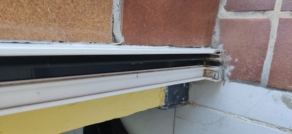 Para hacer una rampa y eliminar el peldaño que había en la salida de la puerta, se cortó el perfil inferior del marco de una puerta de aluminio pues la idea era facilitar la salida de la vivienda con una silla de ruedas. ¿Hay alguna solución para recuperar ese tramo del marco de manera que la puerta vuelva a cerrar sobre el marco? Soluciones supongo que serían cambiarlo todo pero estaba pensando si es posible 'Soldar' (o similar) para recuperar esa parte.