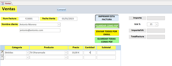 Saludos me llamo Juan Carlos no sé cómo crear un código de access que me actualice el inventario cuando venda un producto