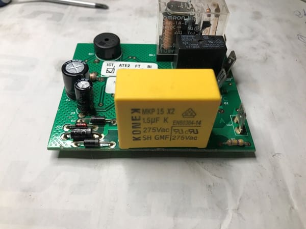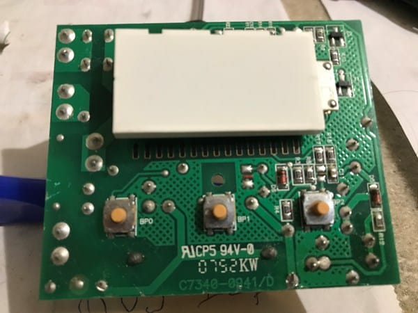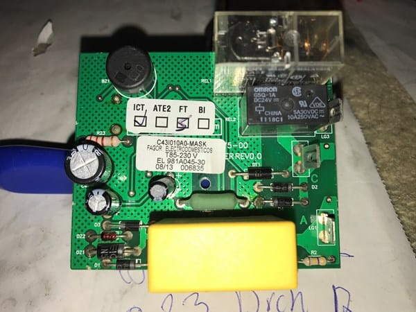 ¡Gracias! Ya energice el horno, pero tenia cambiada la entrada de corriente de la placa del reloj, y una vez rectificada la conexión, la pantalla se ilumina pero no marca ningún numero, los botones hacen el pitido normal...., he desmontado la placa, te envió fotos. Terminal A y C entrada de corriente. pero luego no estoy seguro.. me imagino que la T sea la que va al regulador de temperatura y el otro F valla al programador.( paso fotos) y si supiera orientarme sobre el "condensador" o fallo de la placa ....Muchas gracias.