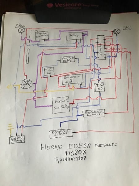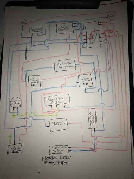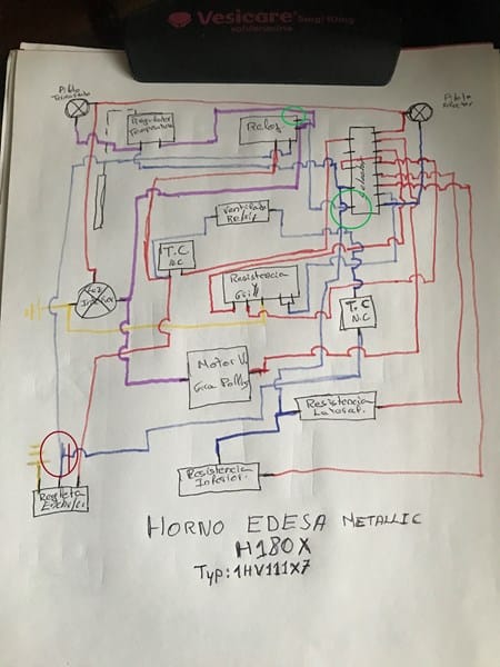 Hola, estoy intentando devolver a la vida este horno Edesa metal H-180 X, me he quedado bloqueado, si alguien pudiera ayudarme con cualquier cosa que me ayude a terminar de cablear lo .
