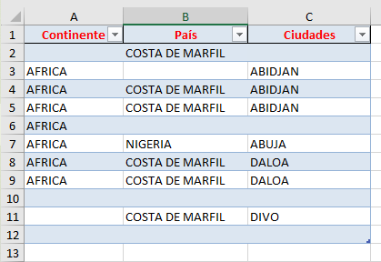 [A2].Select 'opcional: selecciona la primera celda de la tabla