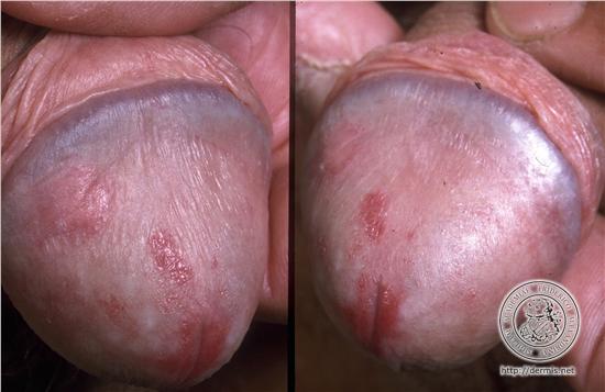 Con todo, por favor, ¿podría decirnos a qué imagen se asemeja más el aspecto del glande? Pertenecen a infección por hongos y cándida, en principio podría tratarse con la pomada "Bactroban" (tratamiento tópico), y Actira (tratamiento oral), deberían ser muy eficaz para solucionarlo, pero ha de ser el especialista urólogo el que lo diagnostique, y proponga una mediación adecuada.