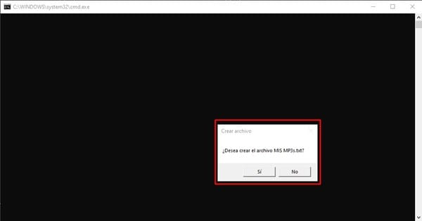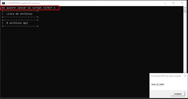 Luego, muestra un mensaje emergente con la cantidad de archivos mp3 encontrados y espera 3 segundos antes de abrir el archivo de texto con la lista.