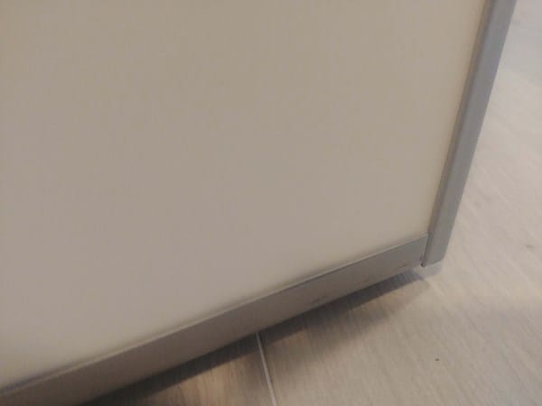 Desde el día que nos entregaron la vivienda detectamos que la puerta presenta unos remates horribles, así como un problema que consideramos que afecta a la seguridad, ya que si apretamos la puerta por la esquina superior o inferior esta cede casi un dedo (esto ocurre con la puerta cerrada con llave). Tanto la empresa instaladora como un comercial de Tesa nos han indicado que esto es completamente normal, que todas sus puertas Tesa se fabrican de esta manera y que esa holgura en la puerta es también normal.