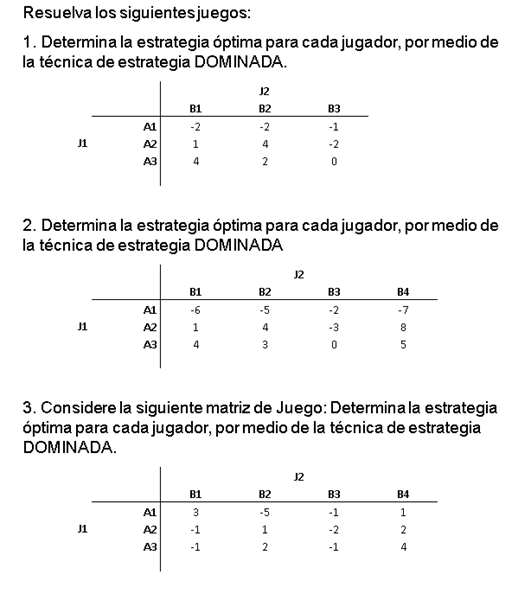 Ejercicios teorías de juegos. Investigación de operaciones.