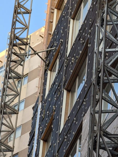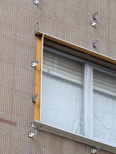 Actualmente están instalando esta fachada trasventilada y veo el remate que hacen para las ventanas fijado directamente a fachada. Es esto correcto.