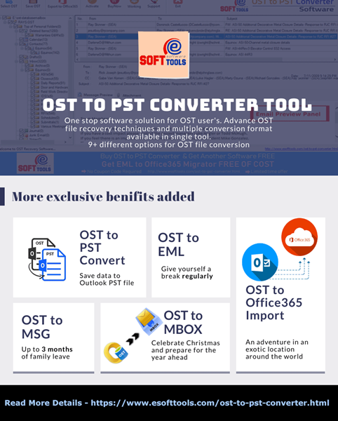 ESoftTools OST to PST Converter Software is the best free OST file viewer and recovers offline OST files data. It preserves the data of the mailbox at the time of conversion with ease and gives instant results safely. Recover OST files to PST files or HTML, ICS, Zimbra, Thunderbird, Gmail, Yahoo mail, etc. This tool can function without Outlook installation. Retrieve 25 items of OST emails from each folder through the free Demo Edition. Also, the latest and best OST to PST Converter Crack tool.