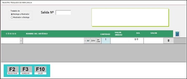 Me pone las nuevas existencias de la bodega saliente, me actualiza la tabla Bodegas. En el combinado Bodega Entrante sólo me muestra las bodegas distintas de la saliente. Y en el momento que selecciono una