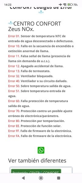 Eh montado un calentador Zeus 3 en casa y me da el error 70 y no encuentro por ningún sitio el modo de solucionarlo alguien sabría como iría