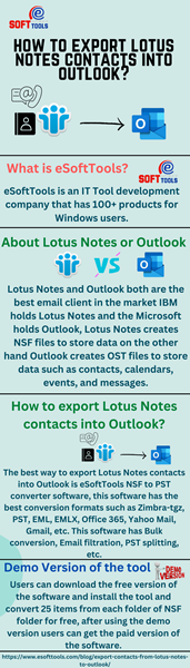 ESoftTools NSF to PST Converter Software helps you safely convert Lotus Notes NSF files to Outlook PST and recover lost data. It allows you to transfer email messages, contacts, calendars, and other information from Lotus Notes to Outlook, giving you easy access to your data in a widely used email management system and convert Lotus Notes NSF files to Outlook PST file format and other types like:- Office 365, Gmail, Yahoo mail, Thunderbird, HTML, MHTML, ICS, Zimbra, etc.