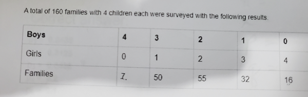 Se encuestó a un total de 160 familias con 4 niños cada una con los siguientes resultados