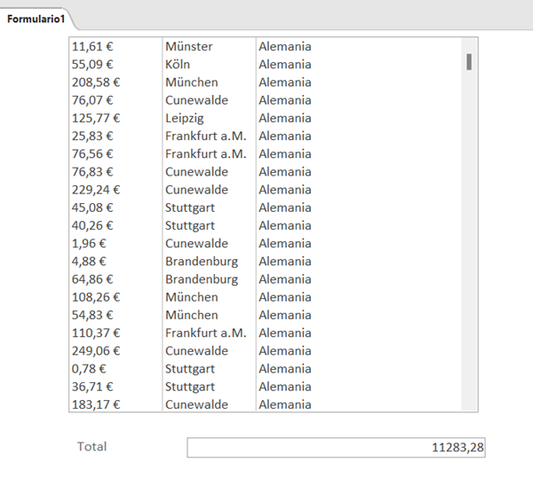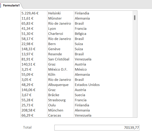 Tengo un Formulario en donde se muestra un cuadro de lista. El origen del control es una consulta que la realizo con varias tablas. Quisiera saber como puedo obtener la suma de una columna en particular y que el valor se muestre en un cuadro independiente que este presente en el formulario. Solamente lo se hacer con subformularios. En este caso quiero sumar la columna 9 que corresponde a "Comision"