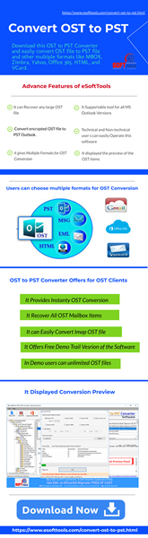 ¿When do you want to swiftly import an OST file into Outlook 365? To do this, use the eSoftTools OST to PST Converter software. Because this application is far more beneficial for converting and importing than another conversion program. This program has an exporting/importing feature that makes it simple to move OST files between several file types, including PST, EML, Gmail, Yahoo Mail, Office 365, Zimbra, MBOX, MSG, ICS, vCard, EMLX, HTML, and others. You can convert or recover particular OST files using its email filtering feature without losing important information.