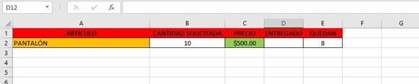 De momento solo voy a entregar 2 pongo la cantidad en D2 y en E2 me dice los que faltan por entregar. La formula que use en E2 es =SI(B2="","",B2-D2)