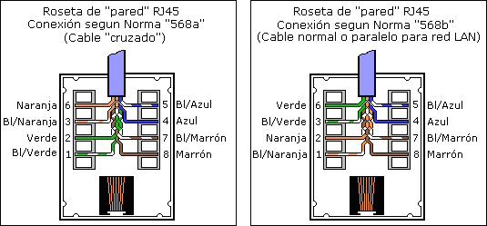 ¿Qué código de colores debo seguir para conectar un Hub o switch con una roseta RJ45?