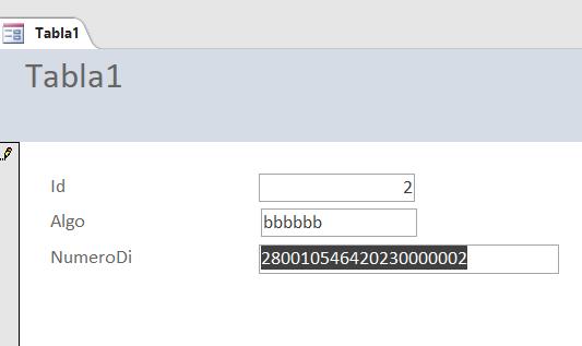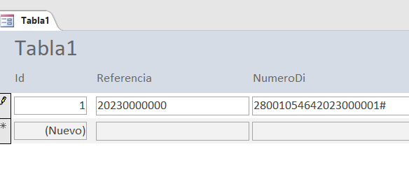 pues bien al ponerlo en vba me aparece esto: NUMERODI = IDDI + 2.8001054642023E+20.
