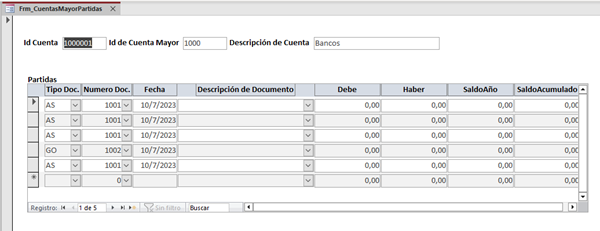 Anexo imagen del Formulario Principal, el cual tiene el SubFrm_Partidas