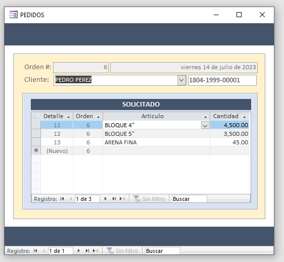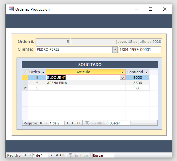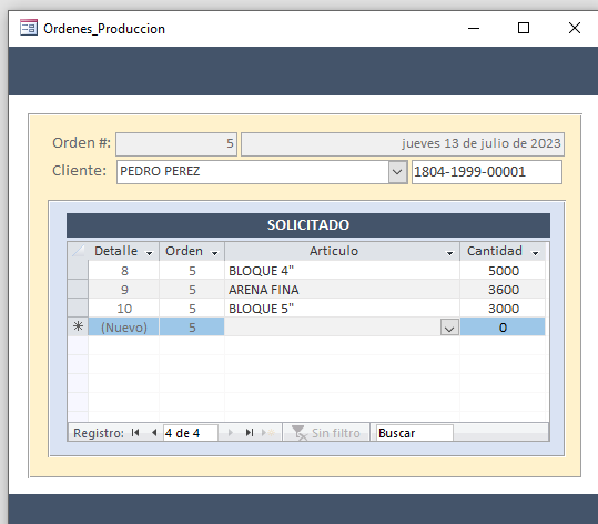 Soy principiante en access y estoy desarrollando un programa para control de ordenes de fabricación y entregas de bloques de concreto u hoprmigon.