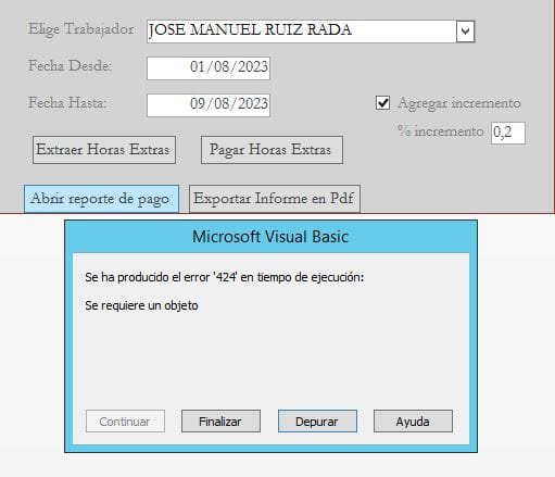 Estoy realizando un evento en un informe en vba y tengo este error que anexo en la imagen