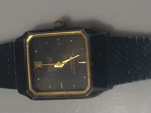 Es reloj dice Seiko y por la parte de atrás quartz 18k gold lecuro plated 25531-2259 tengo otro que dice Cosmo solo que no pude subir la otra imagen la dejo en comentario no estoy segura si es 25531 o 26531