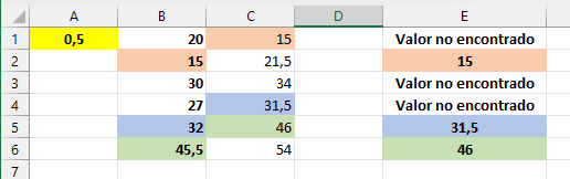 Agradezco de antemano la fórmula que me permita buscar eso, ya que la de BUSCAR V te busca el valor exacto o el aproximado, pero no tiene en cuenta ese criterio del A1