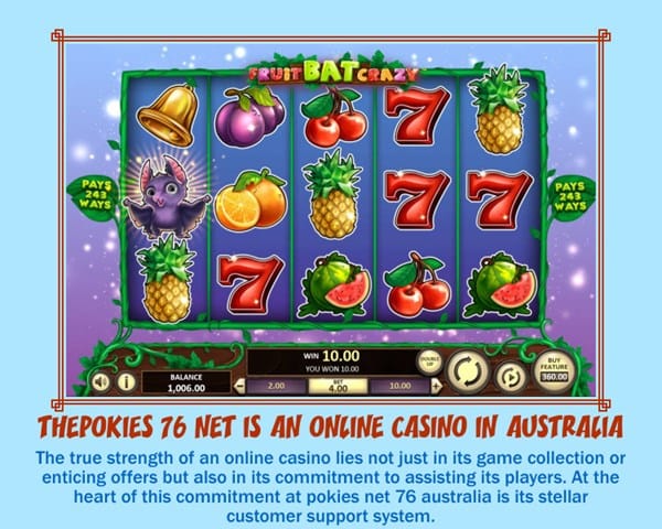 In the world of gambling entertainment, ThePokies76Net occupies an honorable place among online casinos in Australia. This gaming paradise offers a unique mix of excitement and exciting moments against the backdrop of a variety of games and impeccable security.