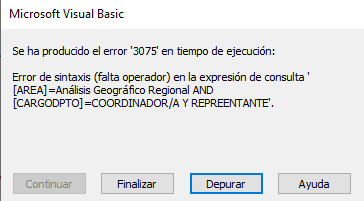 Los datos alfanuméricos (texto) han de ir encerrados entre comillas para que Access interprete 'todo el texto' como un único valor, tal cual esta en la imagen cada palabra (separada por un espacio) la considerara un valor (o si es un texto: una variable).
