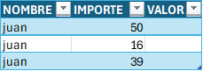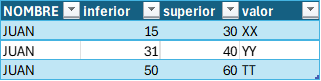 Tengo que buscar primero por nombre, si coincide, ahora tengo que validar si el importe esta dentro de uno de esos rangos, y si lo encuentra me debe traer el VALOR.