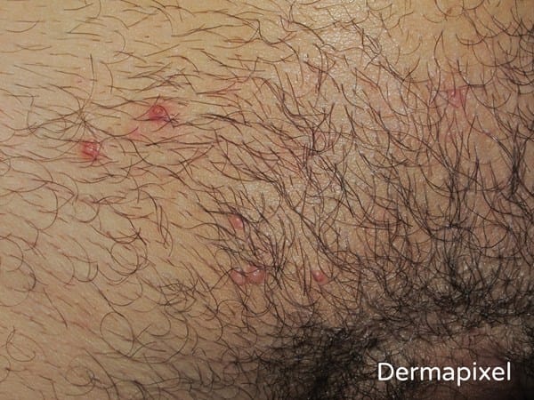 Dentro de mi ignorancia una foliculitis es mu probable, pero en verdad no sabría precisarlo, al menos sin ver una imagen de la zona.