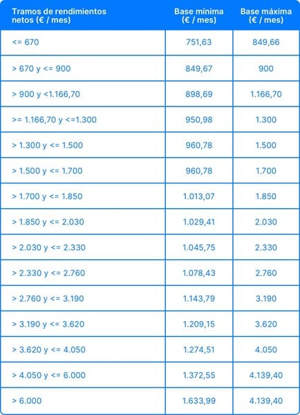 Pero ahora, tal y como te hemos contado, tendrás que elegir la base según tus rendimientos netos mensuales.