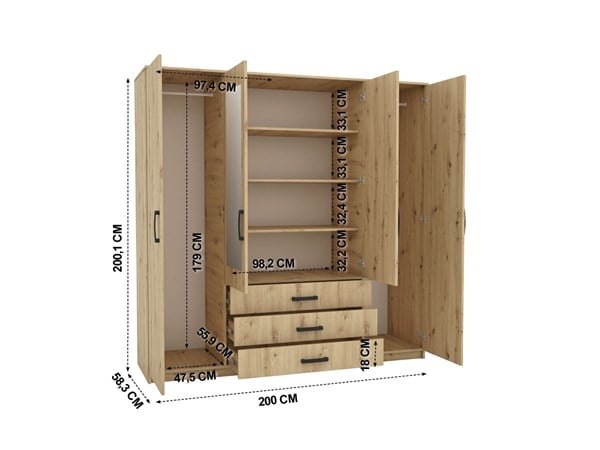 Adjunto la imagen del plano con medidas y la forma y medidas del armario