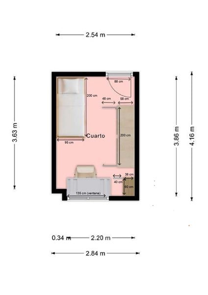 La habitación tendría una cama nido, un armario, un escritorio (quiero poner la mesa más grande que pueda caber sin que esté todo abarrotado), una estantería (es la que está en la esquina) y, si se puede, algo para almacenar cosas varias.