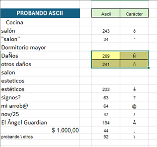 En la col D coloqué la fórmula: =CARACTER(C4) y así pude comprobar que las Ñ en mi equipo no correspondían a los valores de la lista.