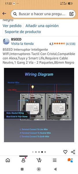 He comprado 2 conmutadores wifi y los quería instalar con un cableado standard de conmutada y no se si va a ser posible, los mecanismos que yo tengo son un conmutador normal y uno wifi para poder manejarlo con alexa y estéticamente no me gusta porque son diferentes y no queda bien en el pasillo, por eso he comprado 2 iguales pero sin ayuda no se si voy a poder instalar, os mando las imágenes del plano de montaje i los cables que tienen mis cajas y si me pueden ayudar se lo agradezco de veras. Gracias