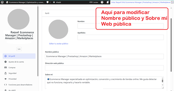 Cómo cambio el nombre del perfil del Gravatar en Wordpress