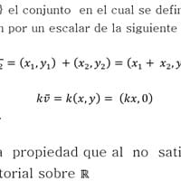 Determina cuál es la propiedad o axioma, que al no satisfacer, impide que V sea un espacio vectorial sobre R