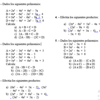 Dados los siguientes datos como calculo los siguientes polinomios y productos