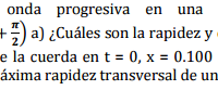 La función de onda para una onda progresiva en una cuerda tensa es (en unidades SI)
